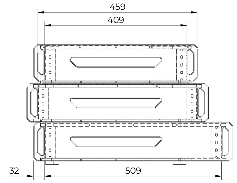Käfigmuttern und Rackschrauben für die vordere Rackschiene sind enthalten.